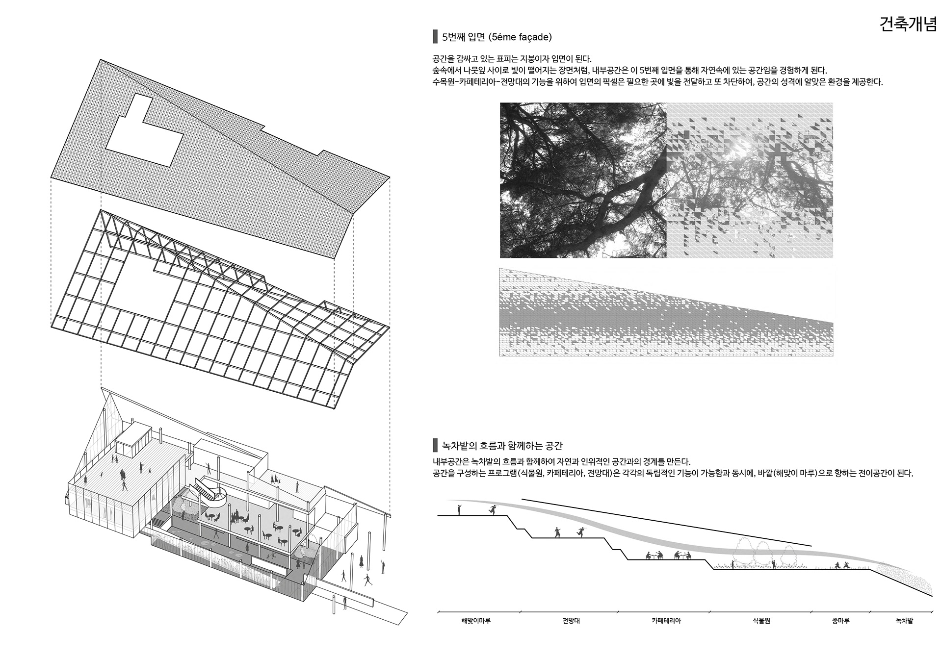 3rd Prize_with MPA 대지위치 : 전라남도 보성군 회천면 영천리 1-2번지 대지면적 : 52,532㎡ 건축면적 : 1,084.23㎡ 연면적 : 1,470.63㎡ 건축규모 : 지하 1층, 지상3층 용도 : 관광휴게시설(관망탑) 주요시설 : 전망대, 식물원, 카페테리아, 기념품샵