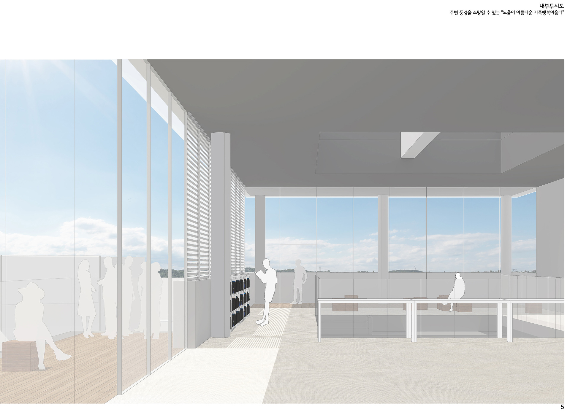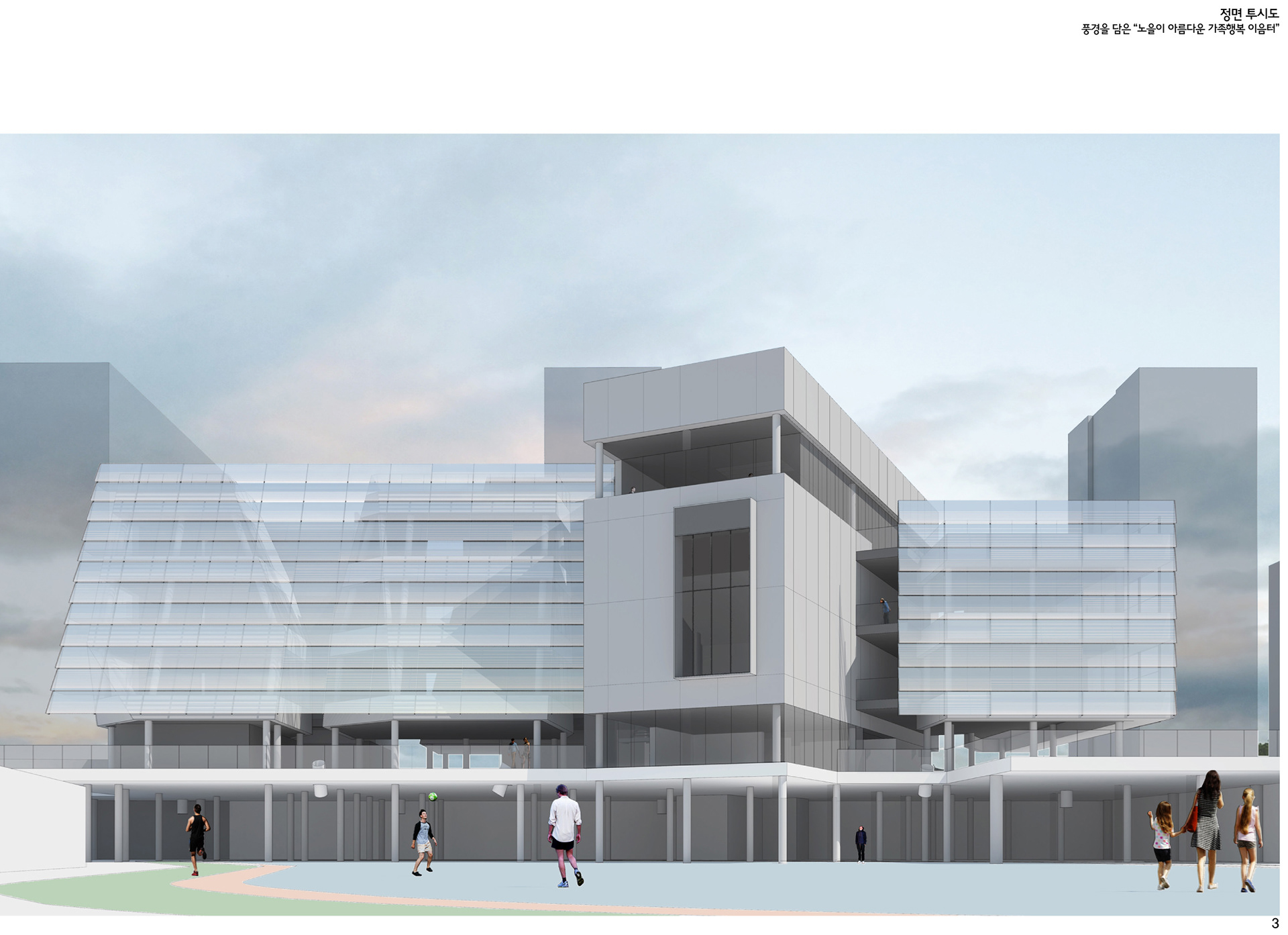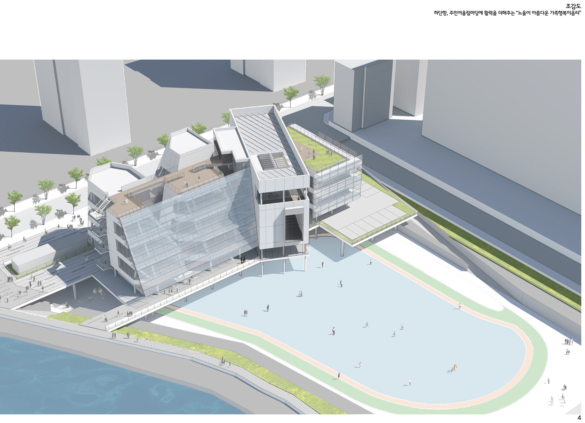 4th Prize_With MPA 대지위치 : 부산광역시 사하구 하단동 대지면적 : 10,963.20㎡ 지역지구 : 제3종일반주거지역 건축면적 : 2,561.01㎡ 연면적 : 3,331.21㎡ 건축규모 : 지상4층 용도 : 교육연구시설(도서관), 노유자시설