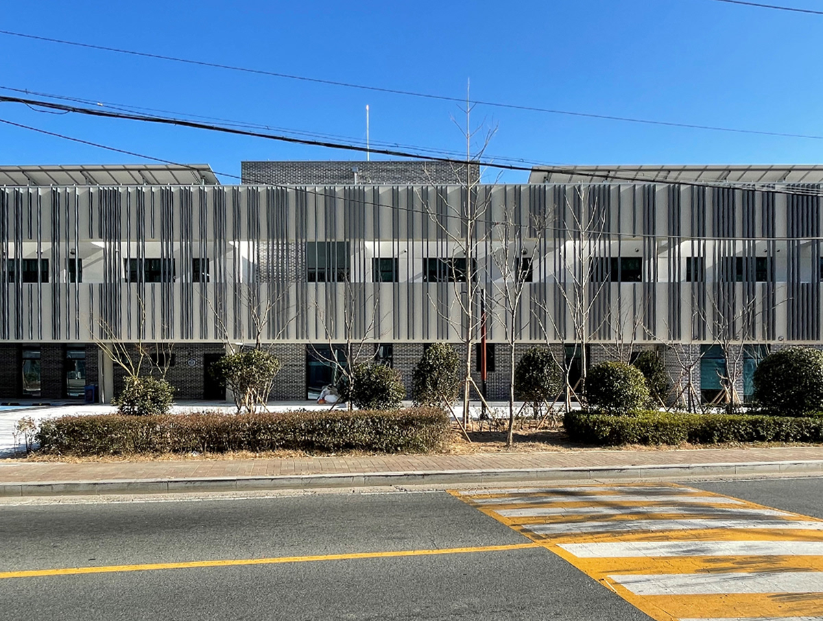 With 주.무위건축사사무소 + MPA 대지위치 : 경상남도 김해시 대동면 지역지구 : 제1종일반주거지역, 제1종지구단위계획구역 대지면적 : 3,560.00㎡ 건축면적 : 1,429.21㎡ 연면적 : 2,436.04㎡ 건축규모 : 지하 1층, 지상2층 용도 : 노유자시설