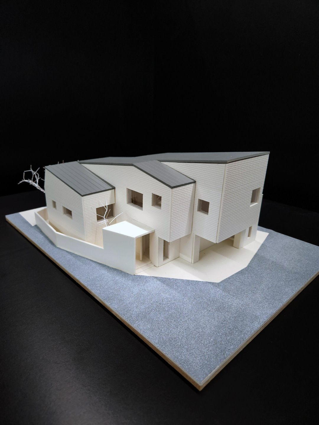 대지위치 : 경상남도 진주시 초전동 지역지구 : 제2종 일반주거지역,자연경관지구 대지면적 : 192.00㎡ 건축면적 : 91.68㎡ 연면적 : 130.34㎡ 건축규모 : 지상2층 용도 : 단독주택 모형.사진 : 김현준