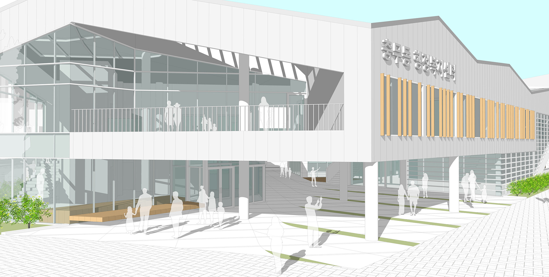 2nd Prize_with MUWI 대지위치 : 경상남도 창원시 진해구 충무동 대지면적 : 1,924㎡ 건축면적 : 1,423.39㎡ 연면적 : 2,932.83㎡ 건축규모 : 지하 1층, 지상2층 용도 : 공공업무시설 주요시설 : 행정복지센터