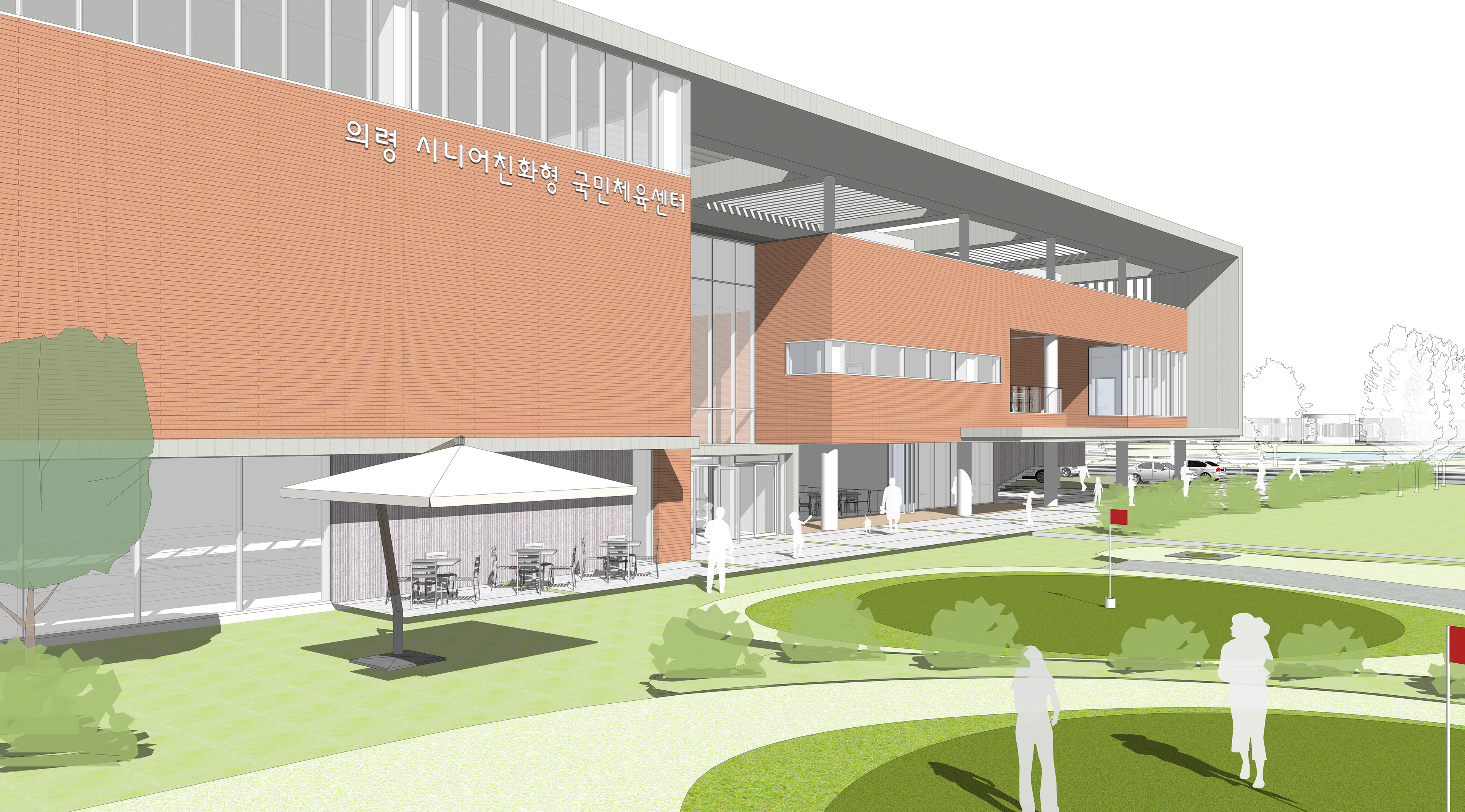 5rd Prize_with Muwi studio 대지위치 : 경상남도 의령군 지역지구 : 생산녹지지역 건축면적 : 1,509.90㎡ 연면적 : 1,770.27㎡ 건축규모 : 지하1층, 지상2층 용도 : 운동시설