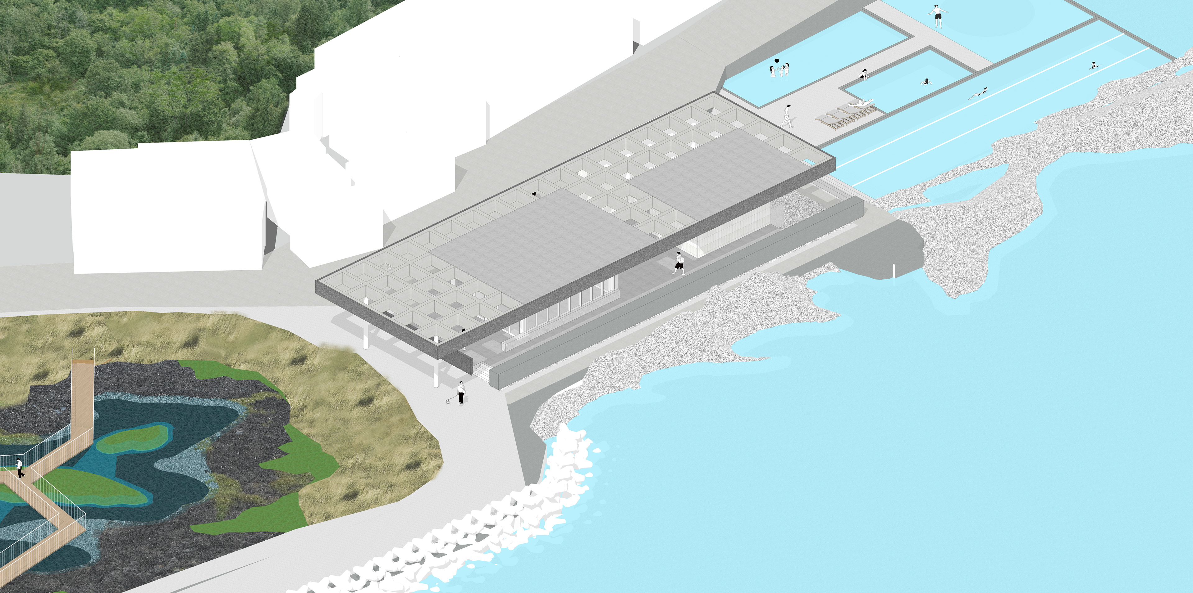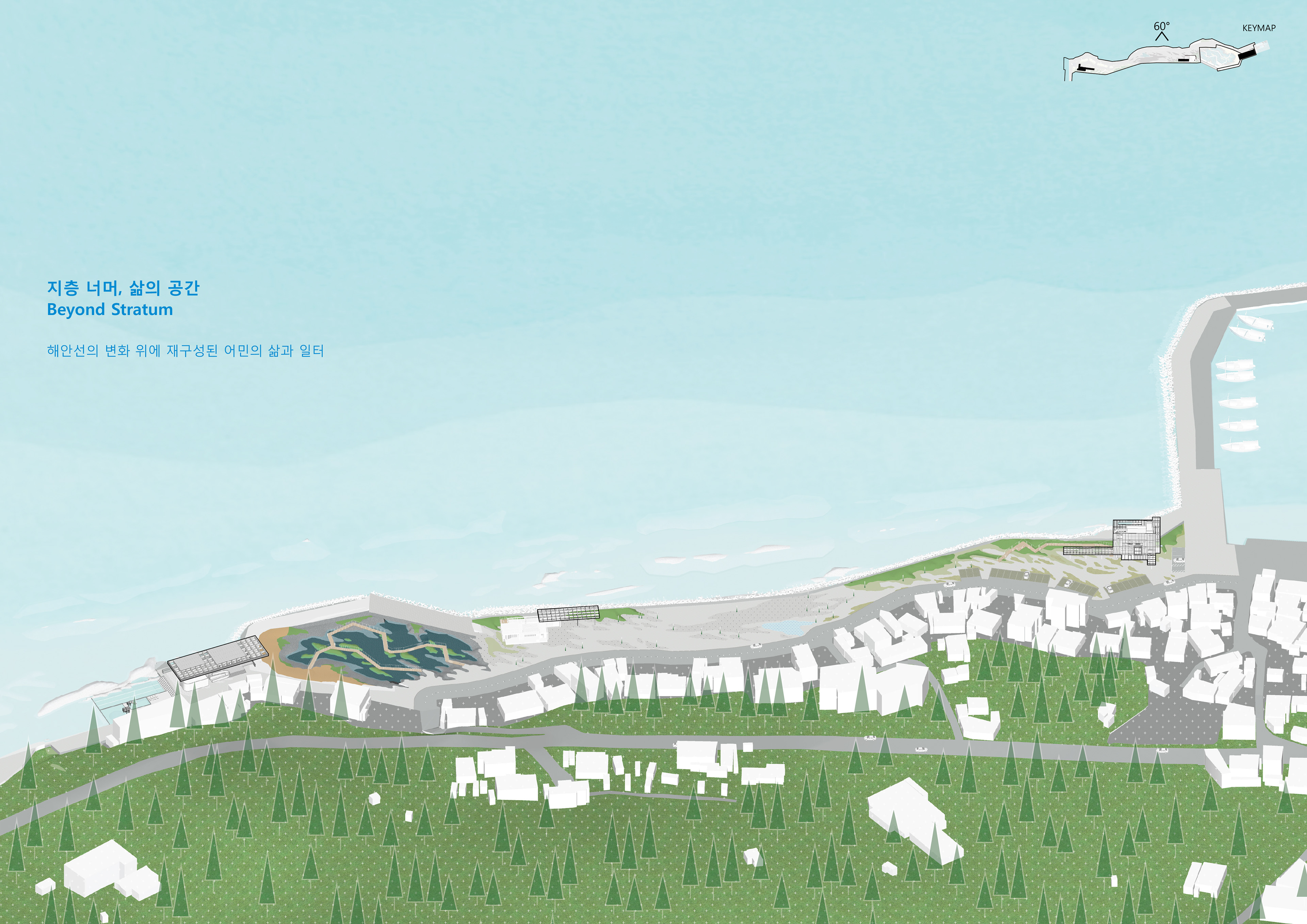 1st prize 설계팀 : 권오열, 김현준 with MPA(김태윤, 차민준) Beyond Stratum 지층 너머, 삶의 공간 ㅣ 해안선의 변화 위에 재구성된 어민의 삶과 일터