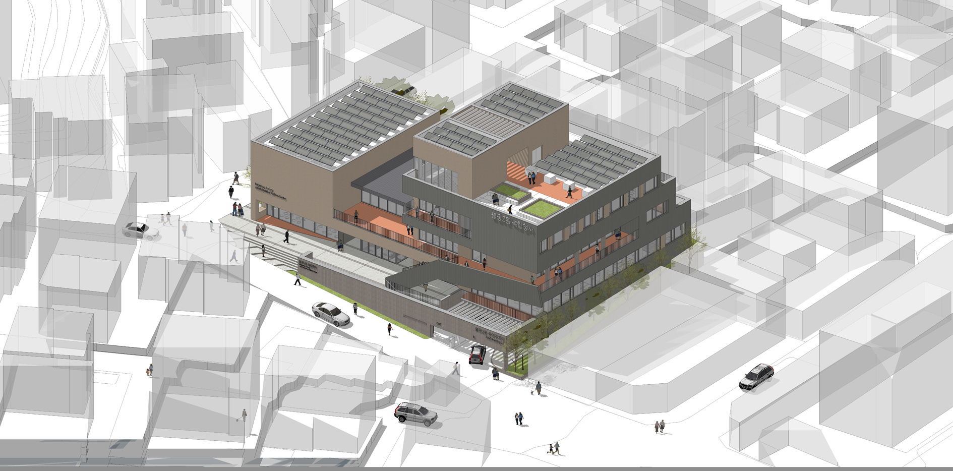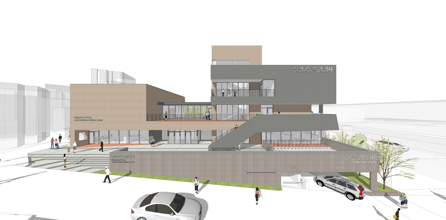 Competition Proposal 대지위치 : 서울특별시 은평구 불광2동 대지면적 : 1,772.00㎡ 지역지구 : 제1종일반주거지역 건축규모 : 지하1층, 지상4층 용도 : 업무시설(행정복지센터), 공영주차장